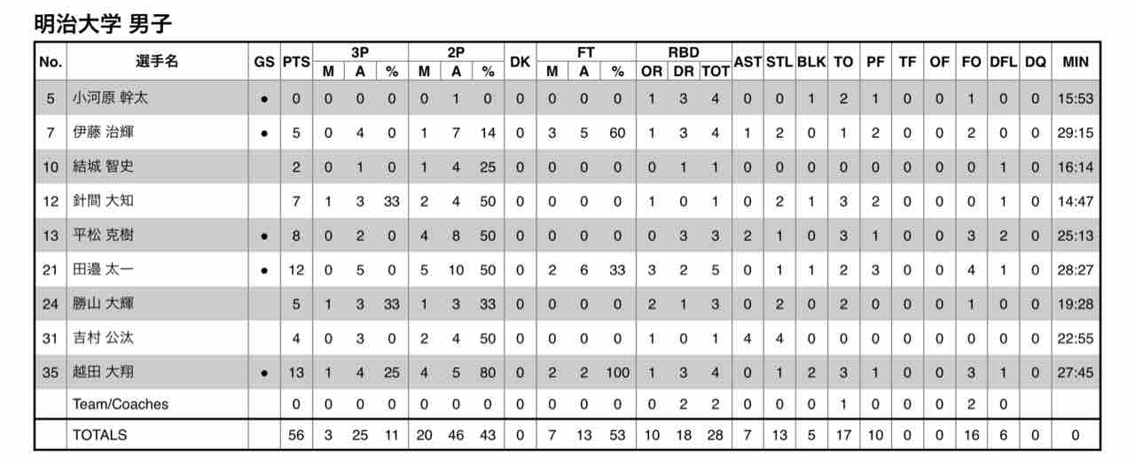 ⚫︎明治大56(7-27, 18-20, 14-26, 6-17)79白鷗大